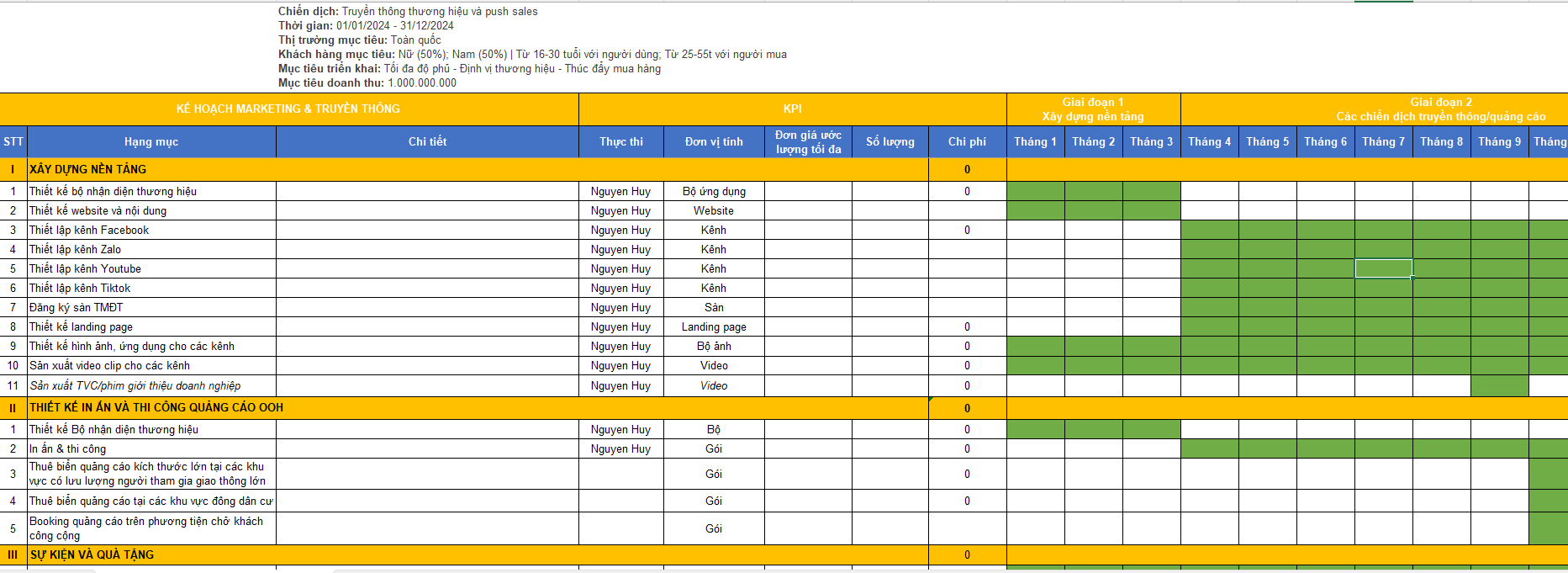 Lên kế hoạch và phân chia giai đoạn triển khai dịch vụ marketing