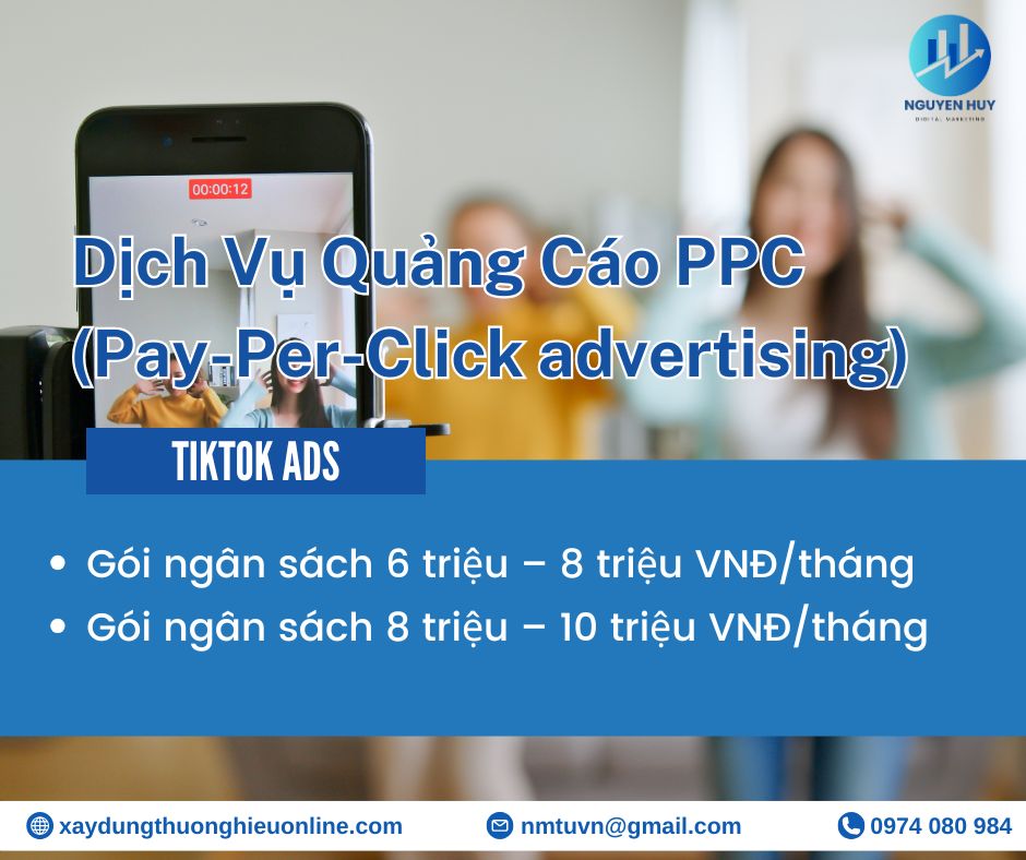 Dịch vụ PPC (Pay-Per-Click Advertising) của Digital Marketing Nguyễn Huy mang đến giải pháp quảng cáo hiệu quả, giúp doanh nghiệp tiếp cận khách hàng tiềm năng một cách nhanh chóng thông qua nền tảng TikTok Ads. Với hình thức quảng cáo này, doanh nghiệp chỉ trả tiền khi có người nhấp vào quảng cáo của mình, từ đó tối ưu hóa chi phí và đảm bảo tiếp cận đúng đối tượng.