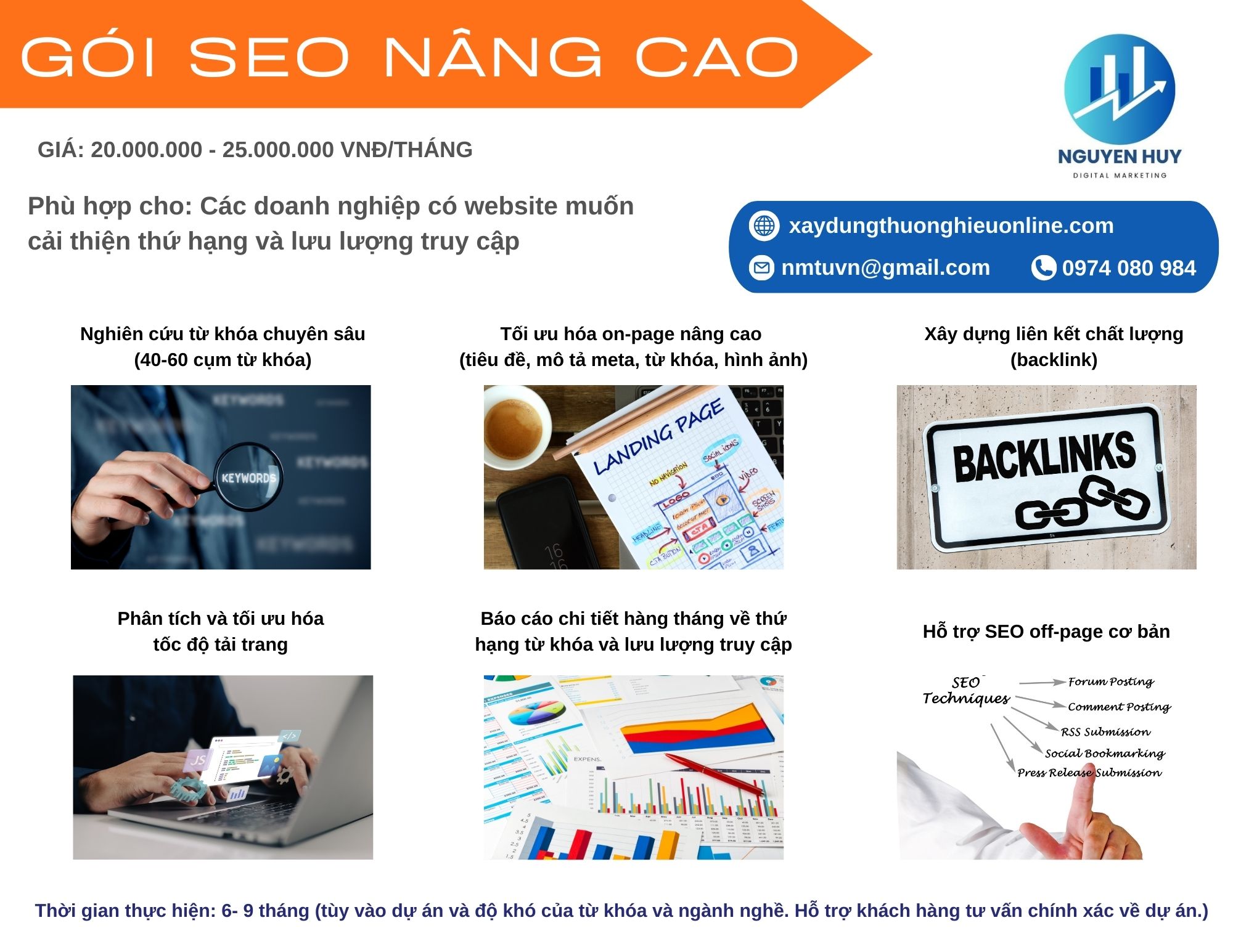 Digital Marketing Nguyễn Huy chuyên cung cấp giải pháp tiếp thị số toàn diện, giúp doanh nghiệp tiếp cận khách hàng tiềm năng và phát triển bền vững. Chúng tôi cam kết mang lại hiệu quả vượt trội và tối ưu chi phí cho mọi chiến dịch.