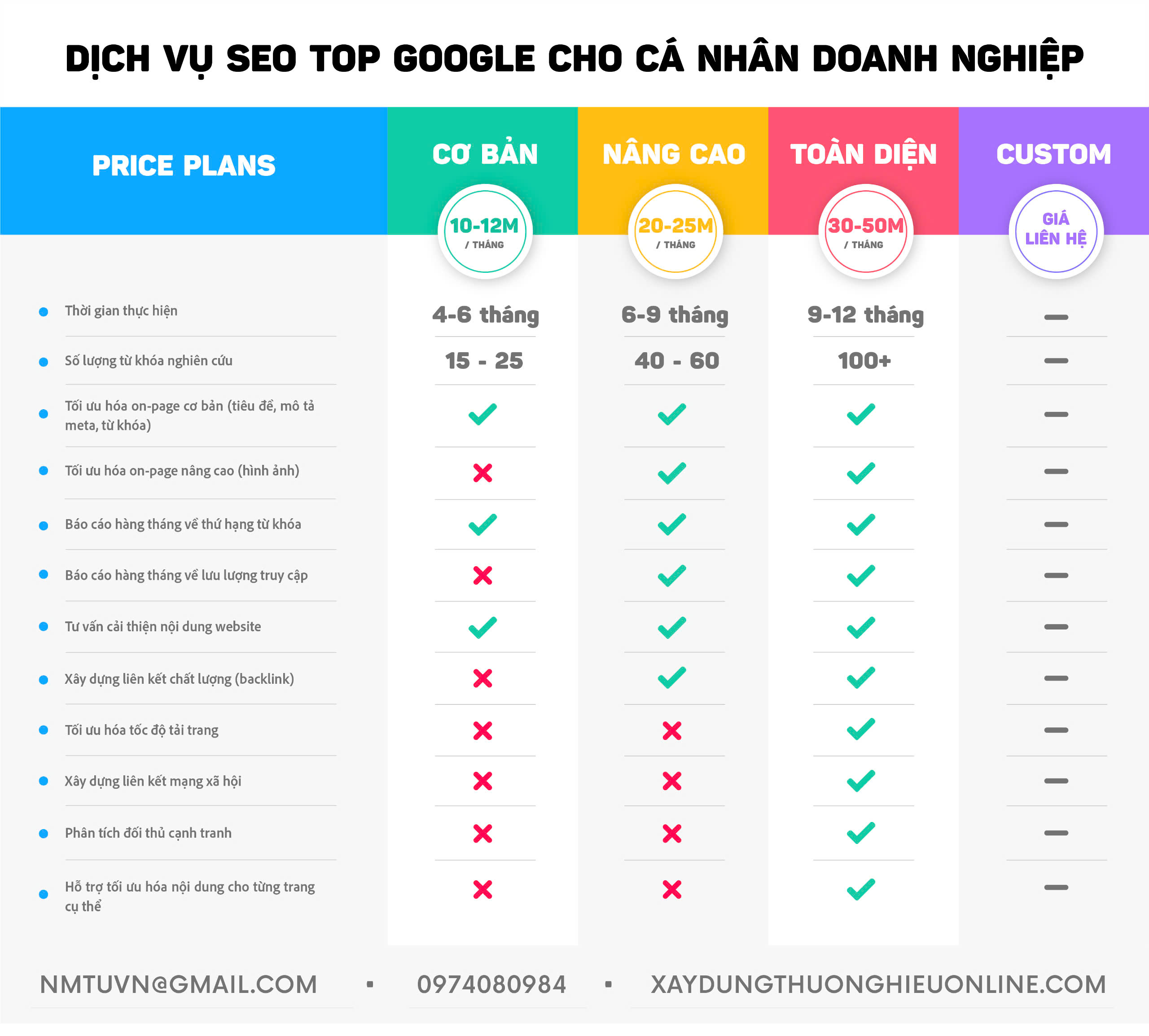 Giá cả dịch vụ SEO có thể khác nhau tùy thuộc vào nhiều yếu tố, bao gồm độ phức tạp của dự án, mức độ cạnh tranh của từ khóa, và thời gian cần thiết để đạt được kết quả. Thông thường, một dịch vụ SEO tổng thể sẽ bao gồm nhiều hoạt động khác nhau, từ nghiên cứu từ khóa, tối ưu hóa nội dung, xây dựng liên kết, cho đến theo dõi và đánh giá hiệu quả.